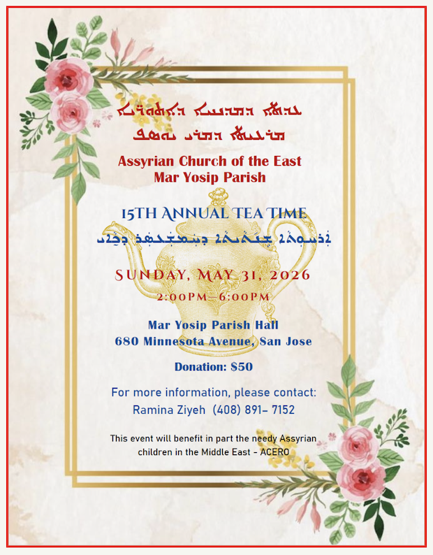 Come and join us for the 15th Annual Mar Yosip Parish Tea Time. Enjoy a showcase of uniquely crafted table center pieces. Sit back and have a great time watching the program we’ve created for you.